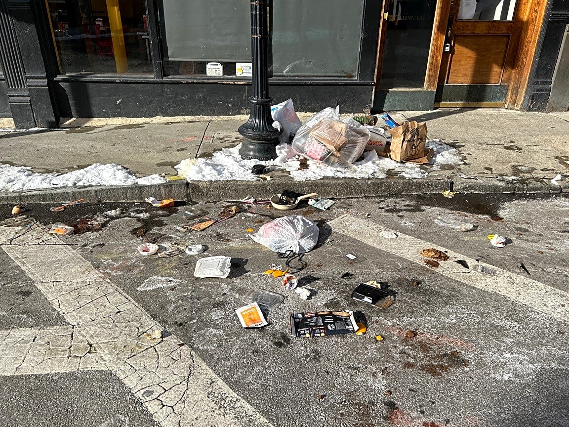 Intersection Of Bedford St And Kingston St, Boston, MaTrash left out