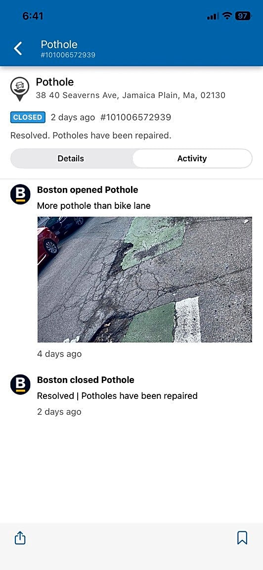 438 Warren St, Dorchester, Ma, 02121Poy hole at bus stop warren st &Quincy st