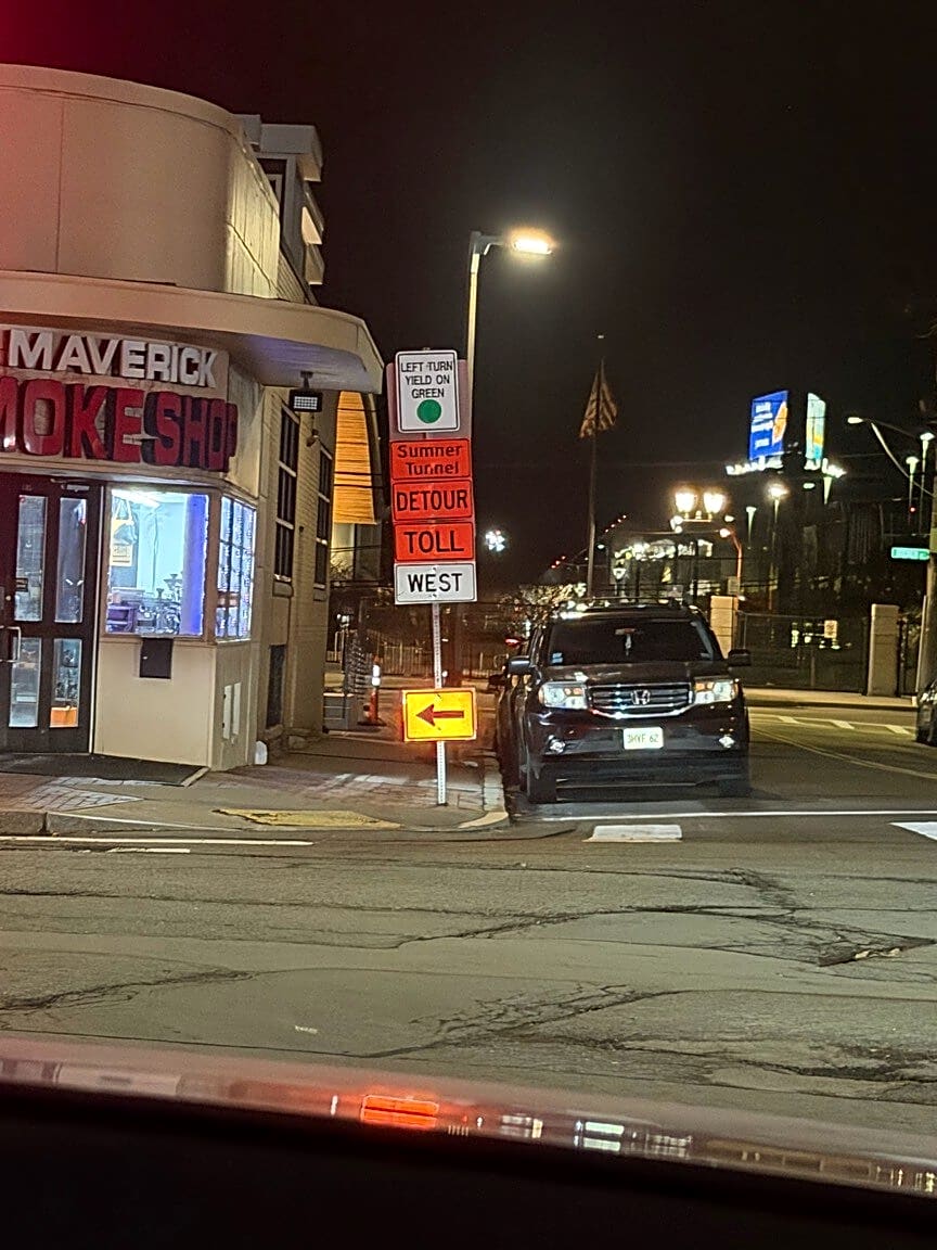 Intersection Of Chelsea St And Prescott St, East Boston, MaOld Sumner Tunnel closure sign is still up