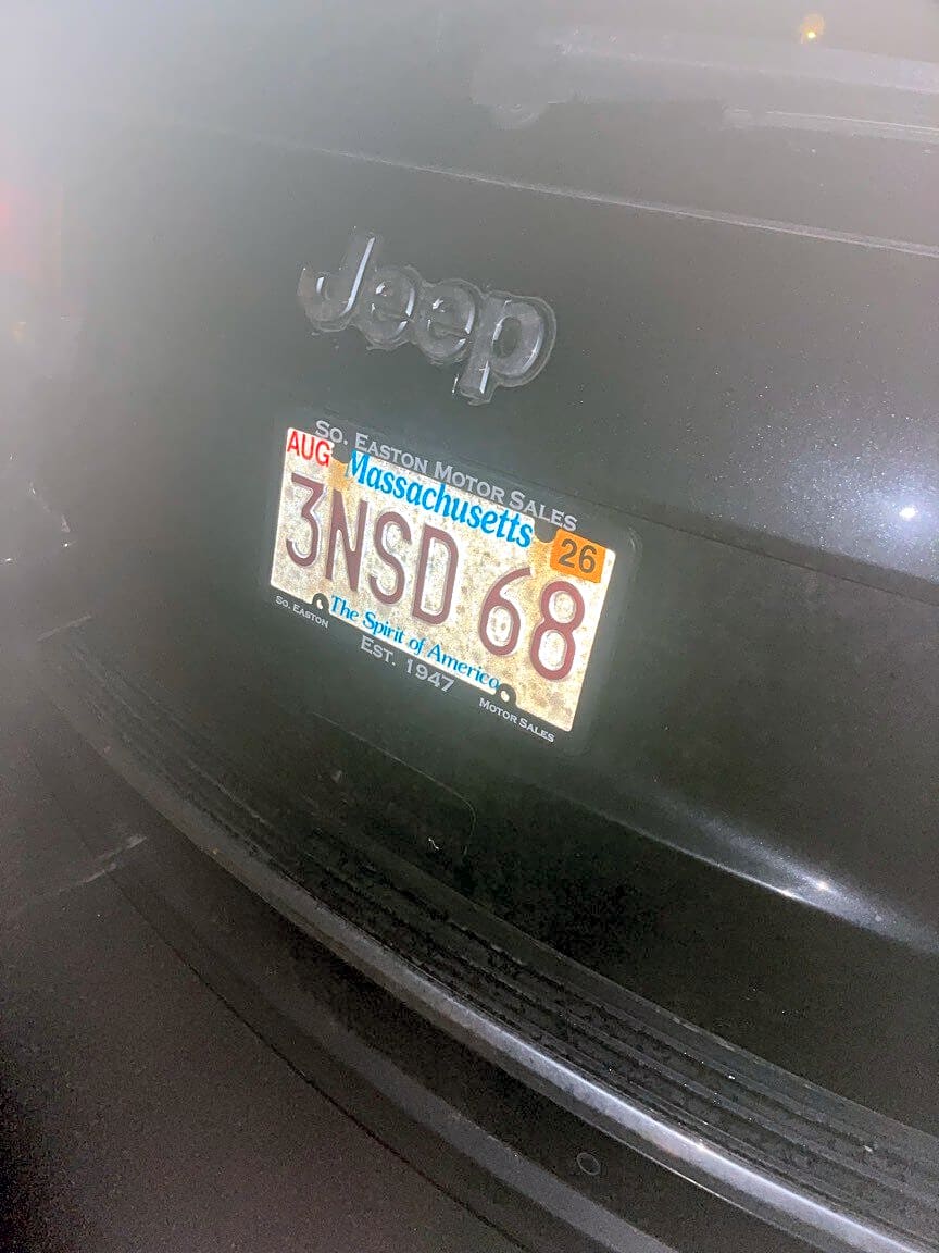 1 Hart Pl, South Boston, Ma, 02127Black Jeep with expired inspection sticker from January