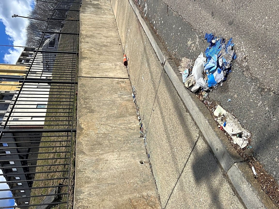 Broken tv, broken lamp, and trash littered on the sidewalk for weeks on the 145 Gladstone St side.