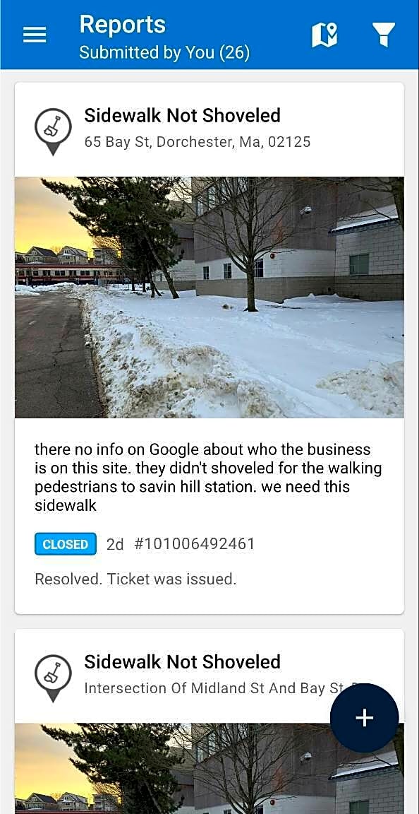 395 397 Massachusetts Ave, Roxbury, Ma, 02118The bus stop at Massachusetts Ave on both the northern and southern side of the streets is not shoveled, making the bus stop inaccessible and having to stop in the crosswalk