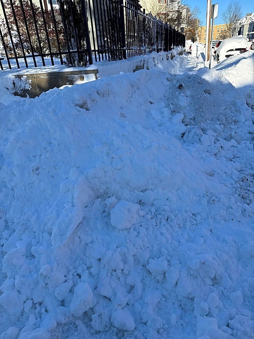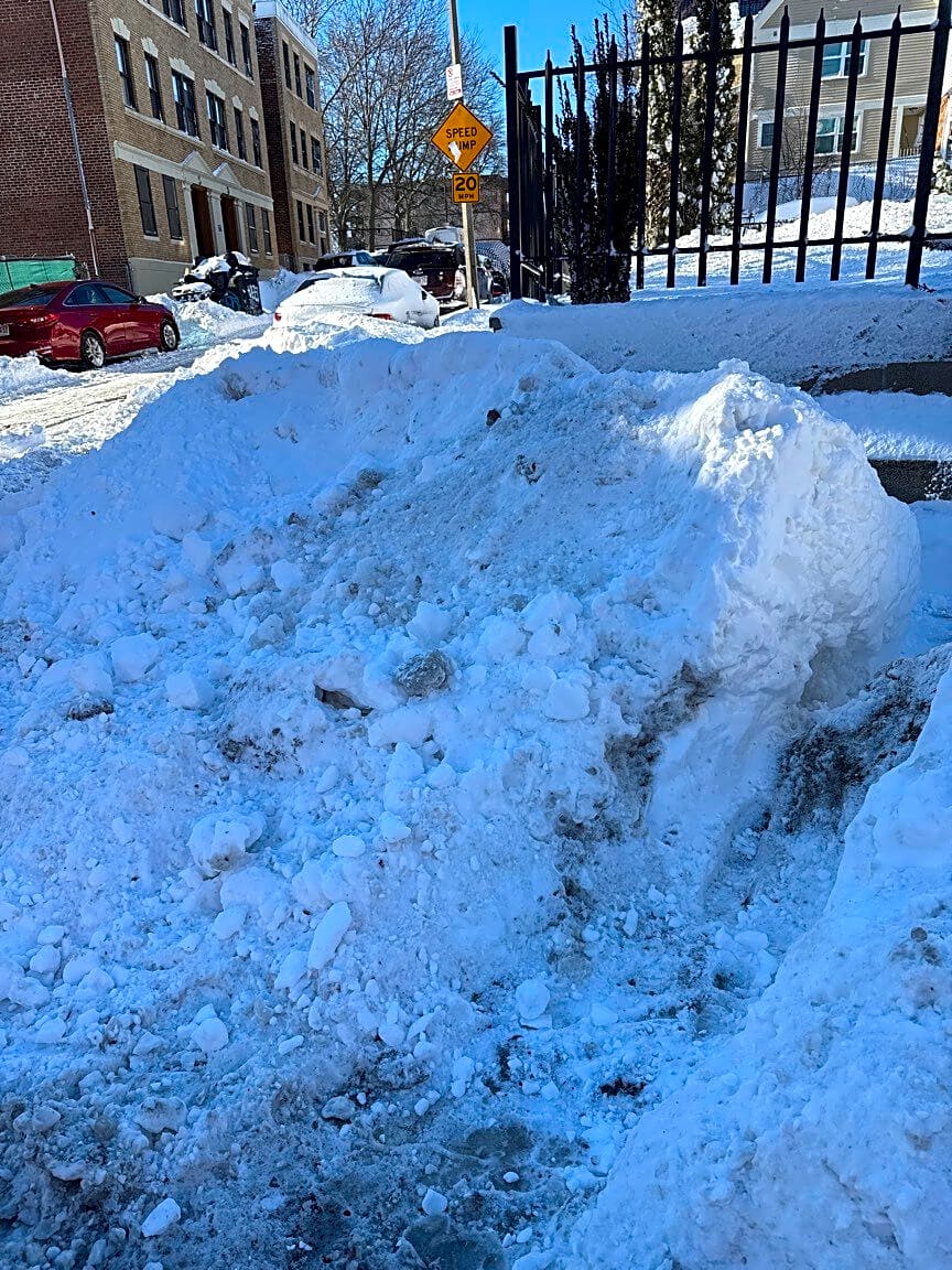 233 Magnolia St, Dorchester, Ma, 02121City plow plowed snow onto the sidewalk at the corner of my house. Sidewalk and ramp are not accessible and too much to clear manually.