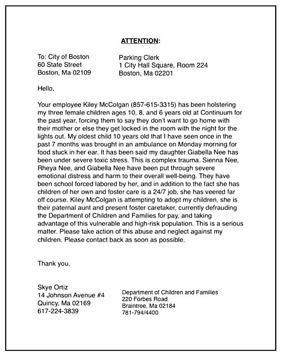 1 City Hall Plz, Boston, Ma, 02108Boston Police Incident Report #252058359. Please read the following up to this to be filed criminal complaint against one of your employees.