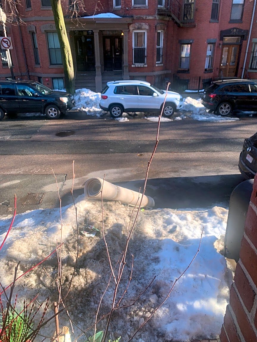 Intersection Of Chandler St And Cazenove St, Boston, MaLarge rolled up rug left in front of our building. It doesn’t belong to anyone in our building and garbage trucks not picking it up. We’ve already received a ticket. Requesting City removal.