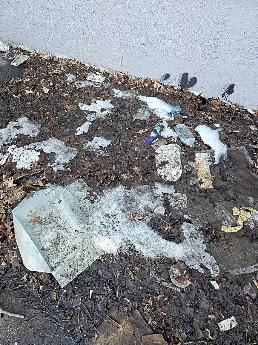 Intersection Of Dickens St And Clayton St, Dorchester, MaTrash all-over under bridge