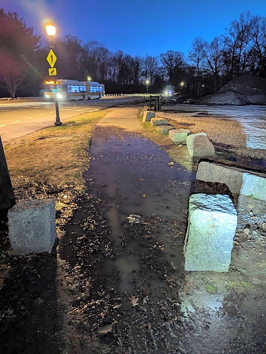 Intersection Of Glen Ln And Glen Rd And Jewish War Veterans Dr And Pierpont Rd, Jamaica Plain, MaFlooded sidewalk in Franklin Park