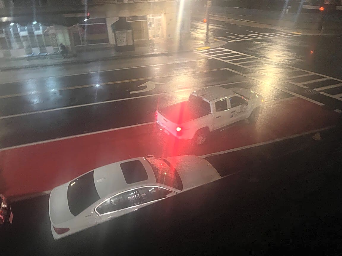 Intersection Of E Berkeley St And Washington St, Roxbury, MaDouble parked in bus lane!!!
