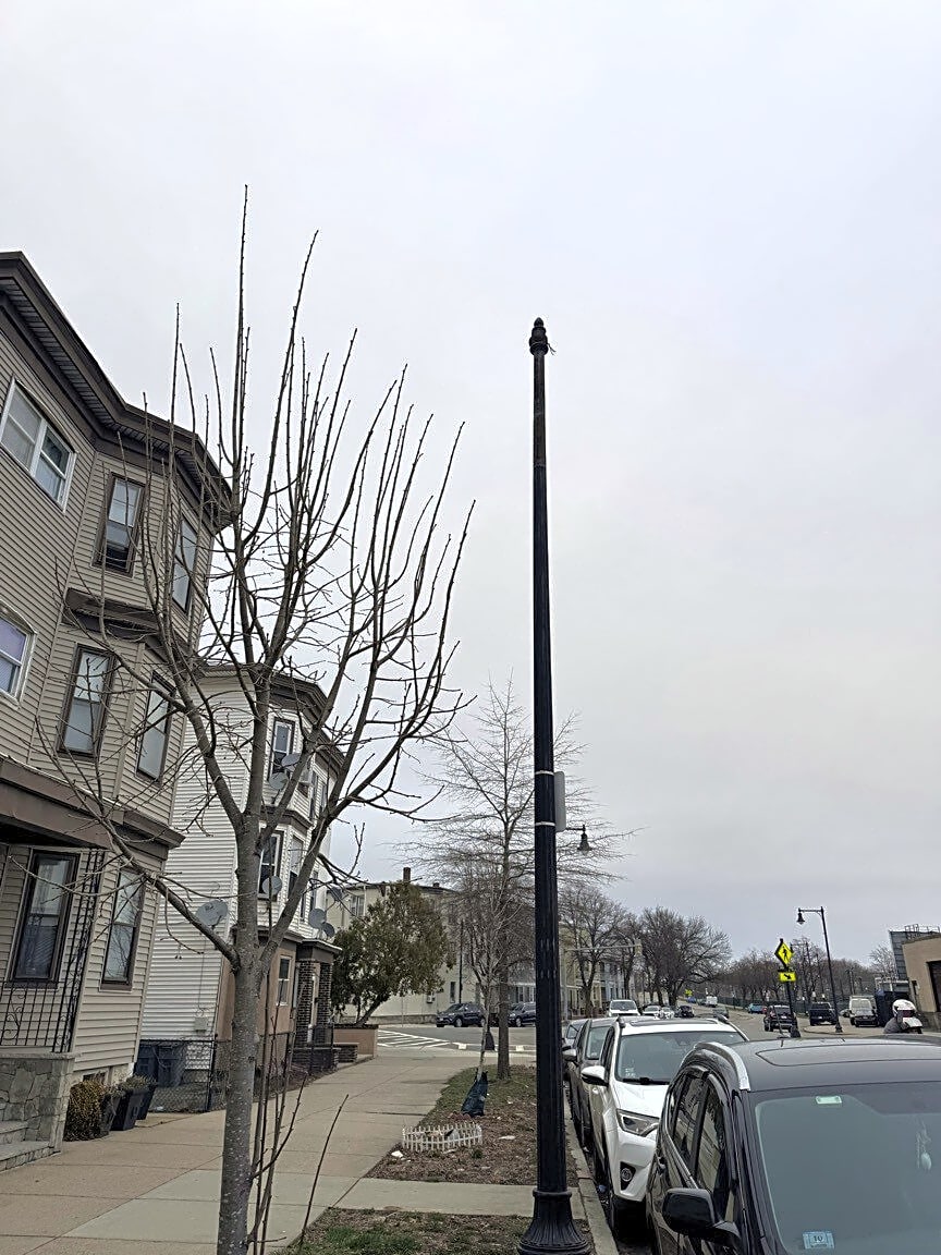 1064 Bennington St, Boston, MA 02128Sent many times, pole needs arm and light. Fell off long ago. Crew was out swapping lights and again did nothing to this pole. Very dark in this spot.