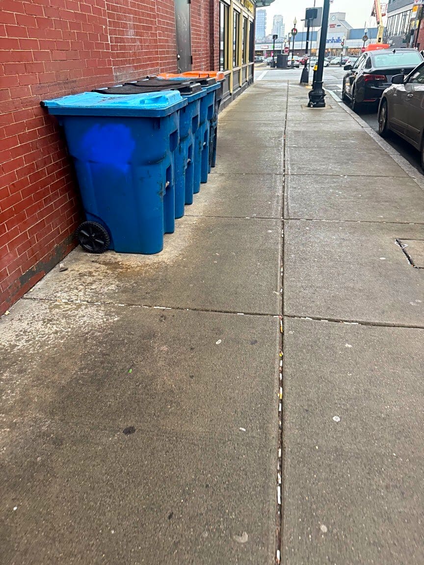 7 Saratoga St, East Boston, Ma, 02128Trash cans out on public sidewalk