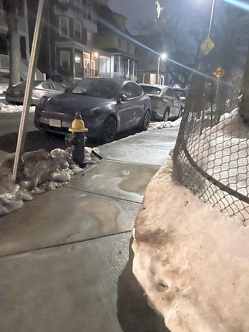 Intersection Of Wabeno St And Wabon St, Dorchester, MaCar parked in front of 30 Wabon St less than 10 feet from a fire hidrant.
