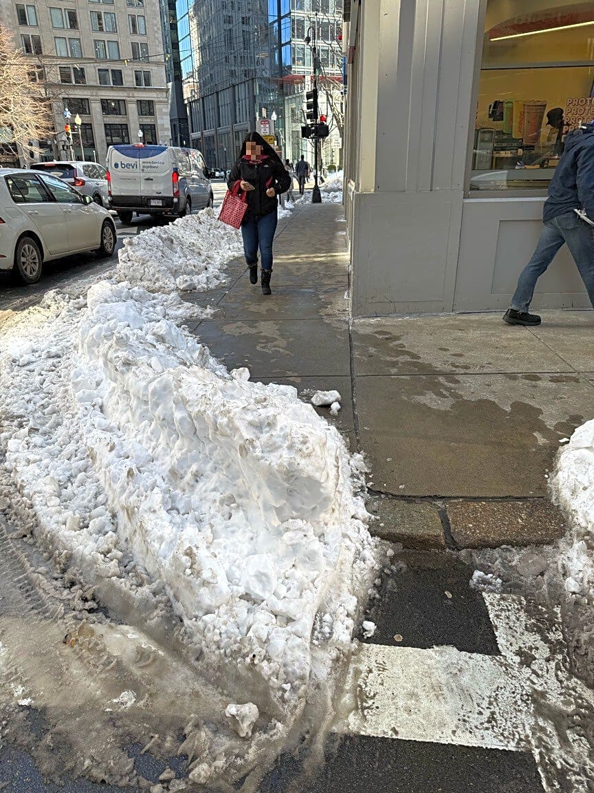 Intersection Of Congress St And Milk St, Boston, MaSidewalk and crosswalk not shoveled.