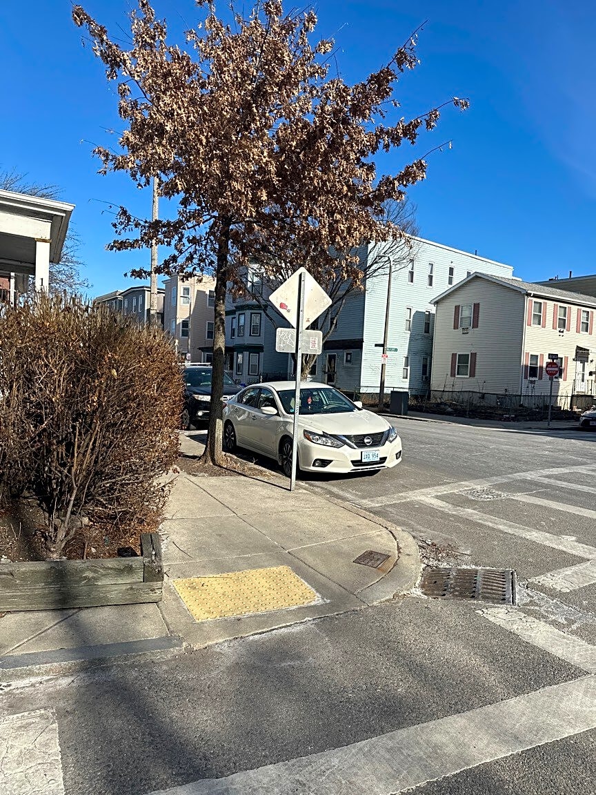Illegal parking on the corner of Boston St. and W. Bellflower Street. Cars cannot see oncoming traffic coming left out of W. Bellflower Street onto Boston Street.