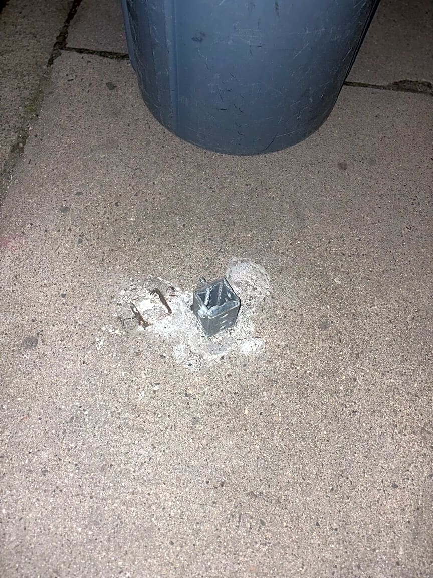104 Geneva Ave, Dorchester, Ma, 02121The Post for st cleaning fell off and the bottom part is sticking out ! Sunday My 93 Year old Mom on it ! please send someone to install a new one !