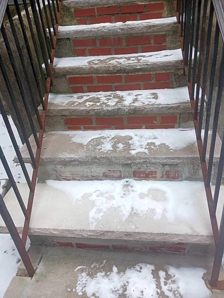3 A 3 B Forbes St, Jamaica Plain, Ma, 02130Stairs and walkway not shoveled. Snow yesterday 01-01-2026 still until today nobody shoveled, Stairs are slippery.
