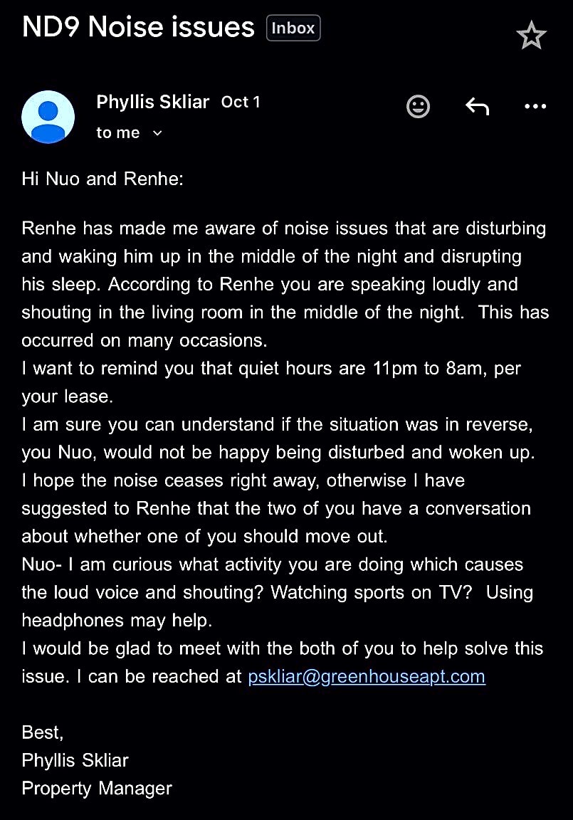 Roommate making late night disturbing noises, and refused to communicate, this is non emergency but urgent so requesting intervene of police department.