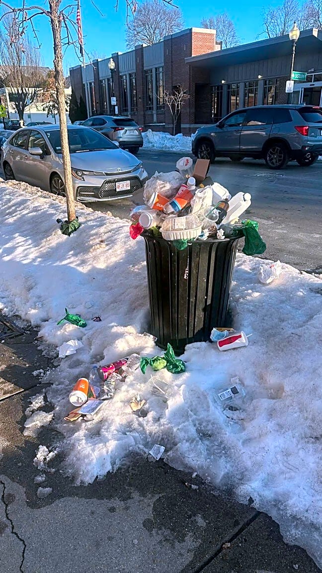 Intersection Of Eastburn St And Washington St, Brighton, MaTrash barrels all along Washington street brighton center are not being emptied. It’s disgusting and residents are complaining