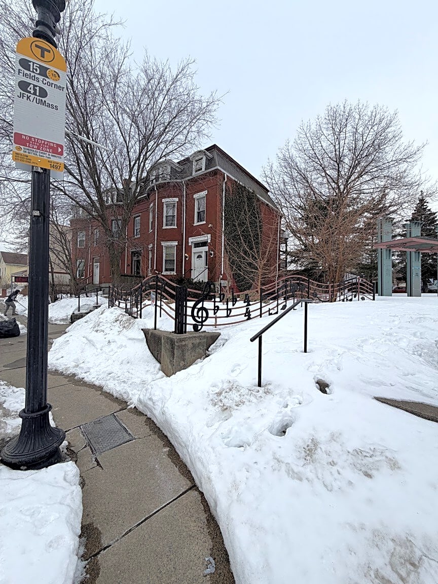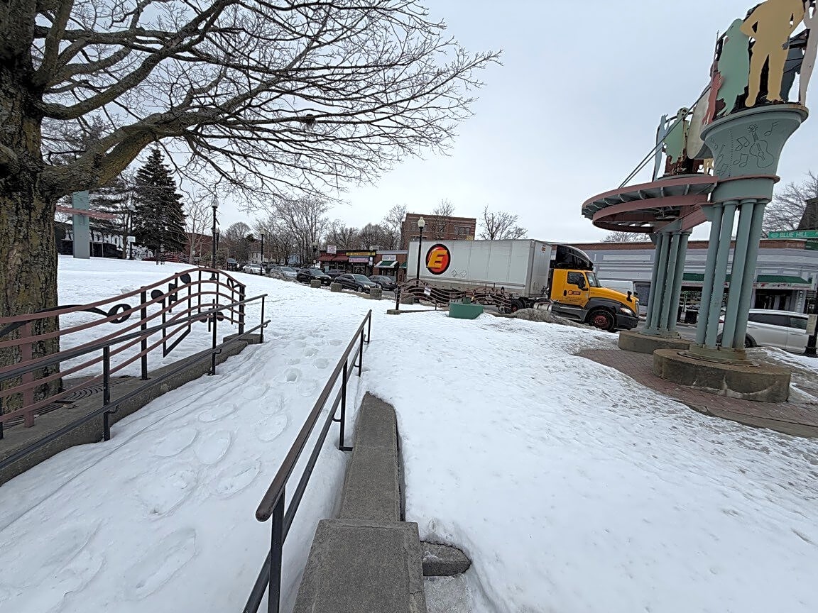 Dudley Town Common in Roxbury cover in ice and snow, really hard use it or get around