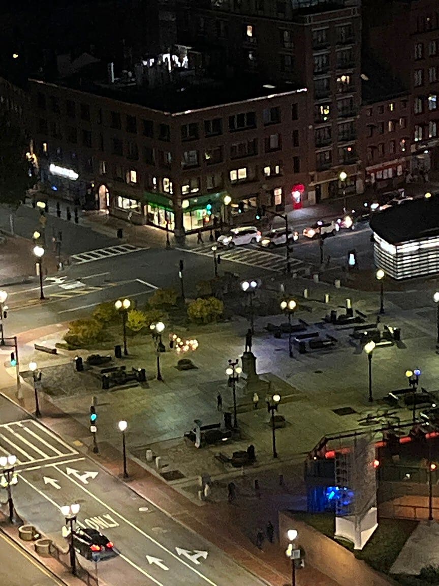1 P Faneuil Hall Sq, Boston, Ma, 02109Loud music from street performers on Dock Square after 11 pm. They surrounded by candles near Samual Adam’s memorial.
