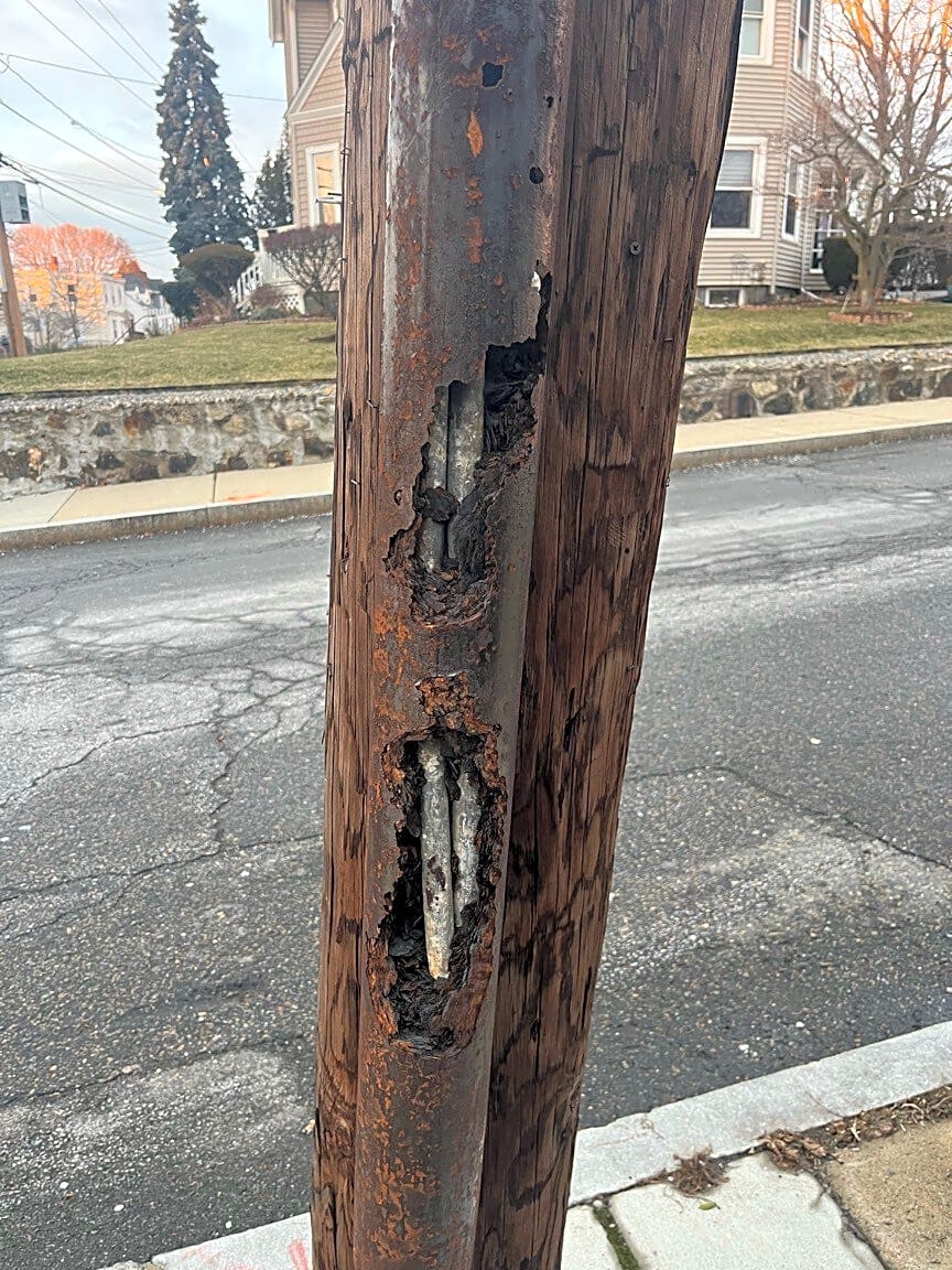 646 Metropolitan Ave, Hyde Park, Ma, 02136Sharp rust on decaying pole
