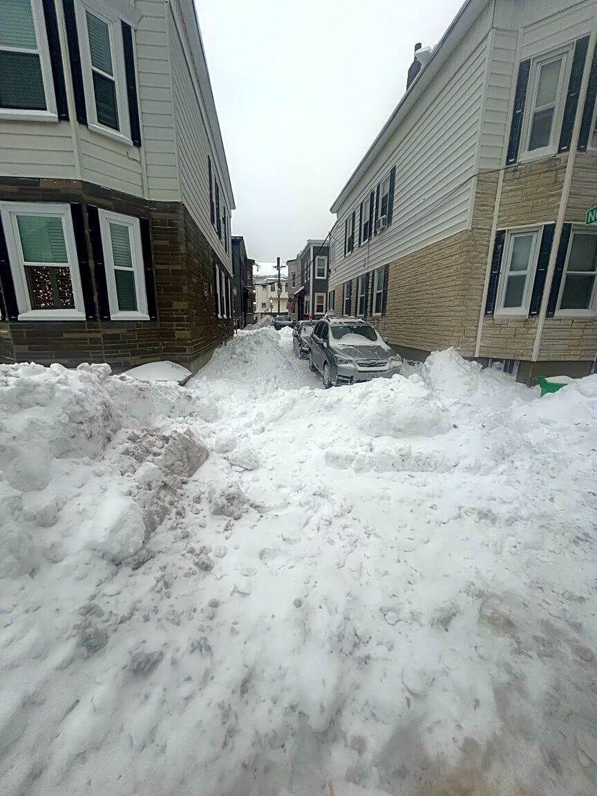 30 Mount Vernon St, Charlestown, Ma, 02129Street still not able to be travelled upon. The plow sent was for sidewalks and the street is not wide enough for cars to drive down it due to the snow banks. This is day 3 of not being able to get out. Please send a real plow and get rid of the snow