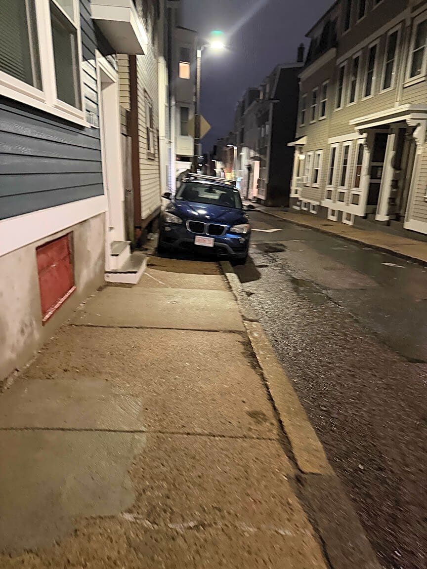 279 Gold St, South Boston, Ma, 02127Car illegally parked blocking sidewalk has been there all day