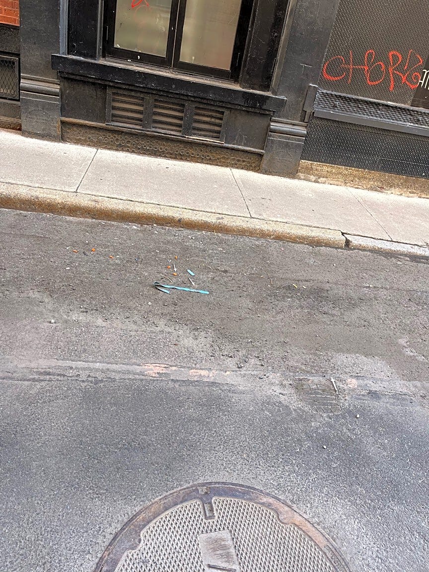 Intersection Of Tufts St And Utica St, Boston, MaThree needles under parked car on tufts st near fire hydrant