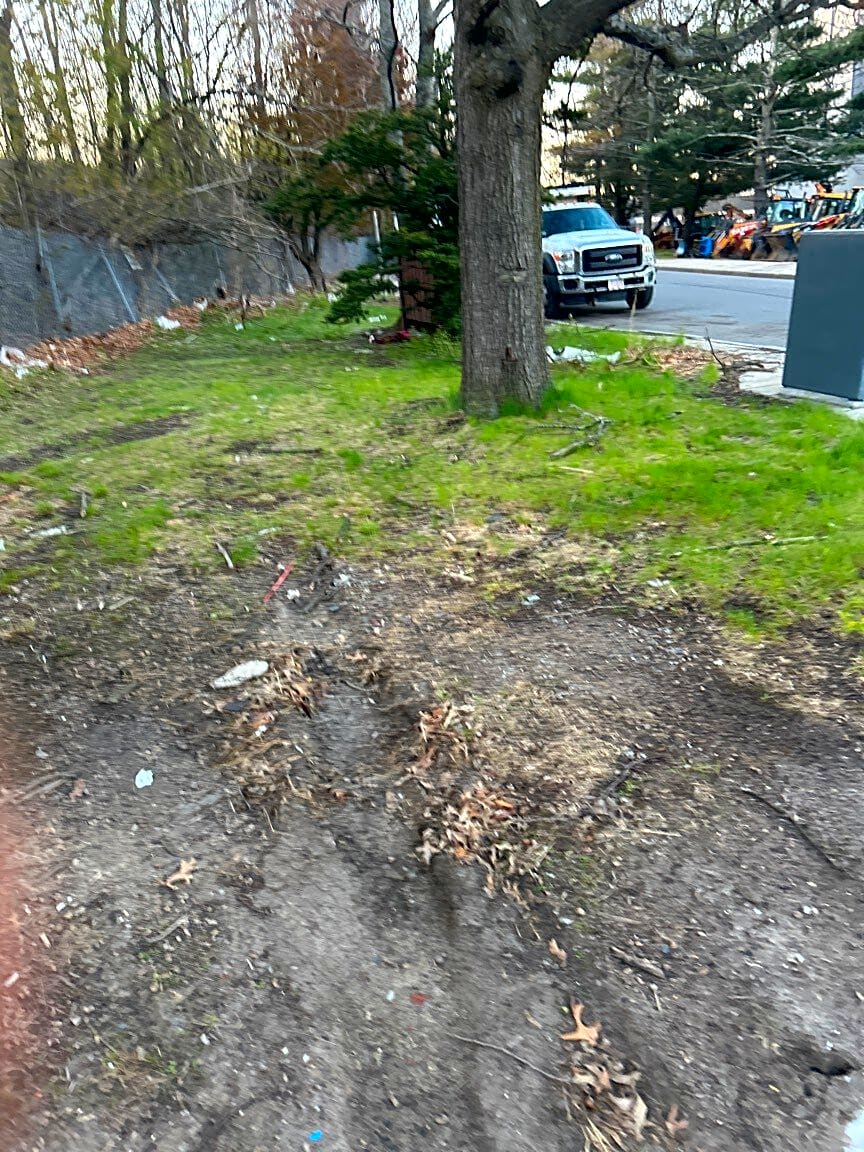 Intersection Of Mapes St And Park St, Dorchester, MaLot trash on grass