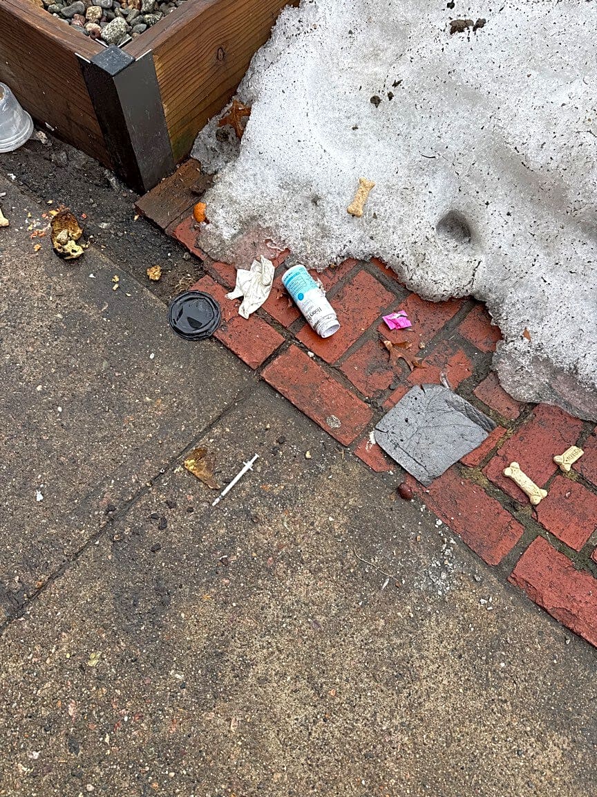530 Columbus Ave, Roxbury, Ma, 02118Needle on sidewalk in front of 532 Columbus