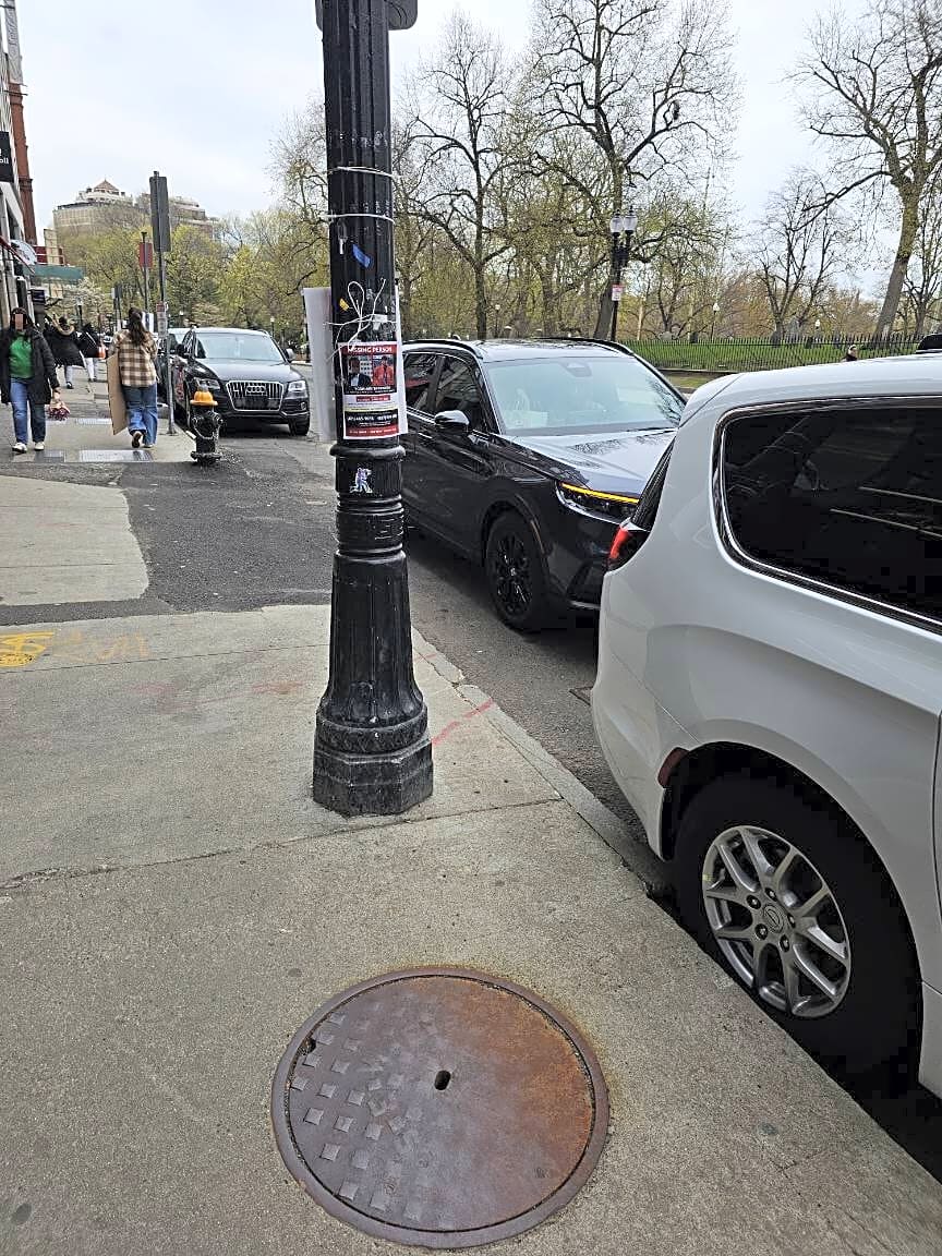 Intersection Of Boylston Pl And Boylston St, Boston, MaVehicle blocking boylston place emergency access and another van blocking fire hydrants
