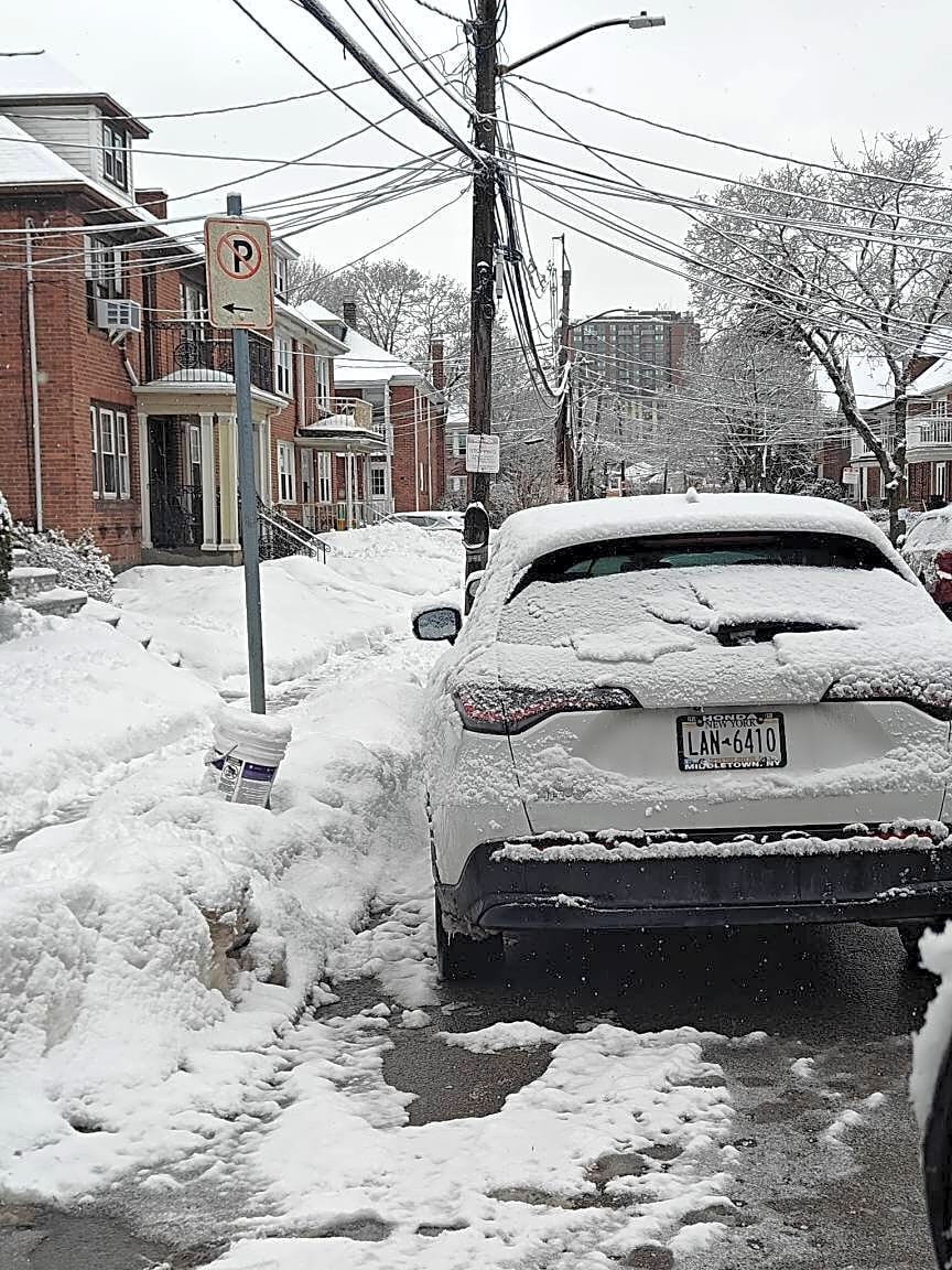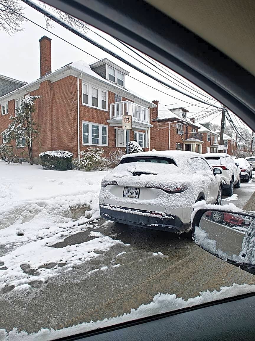 Intersection Of Portina Rd And Wiltshire Rd, Brighton, MaIllegal parking, snowplow trucks and trucks having difficulty getting through, these are one way streets and car is right at the corner.