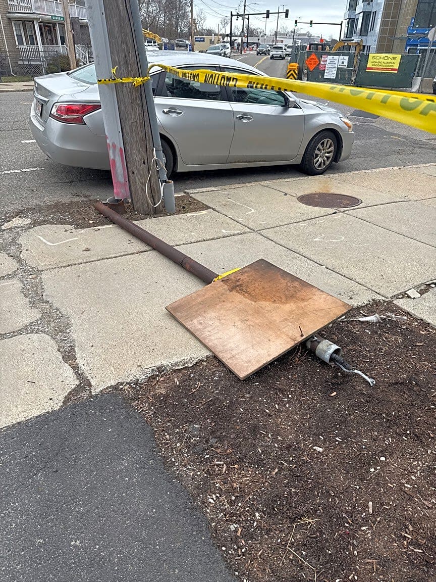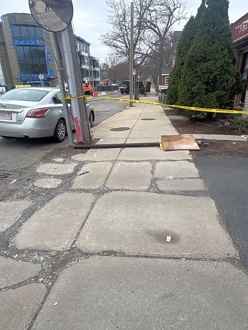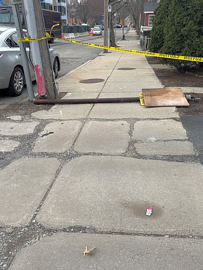Intersection Of Beech St And Belgrade Ave, West Roxbury, MaPipe with wire in it fell down and is blocking sidewalk