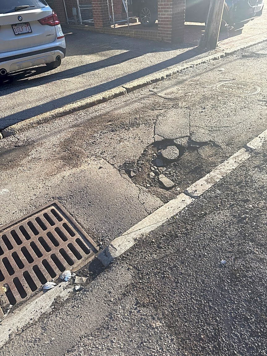Intersection Of Oliver St And Kilby St And Milk St, Boston, MaVery large pothole at Kilby and Milk st.