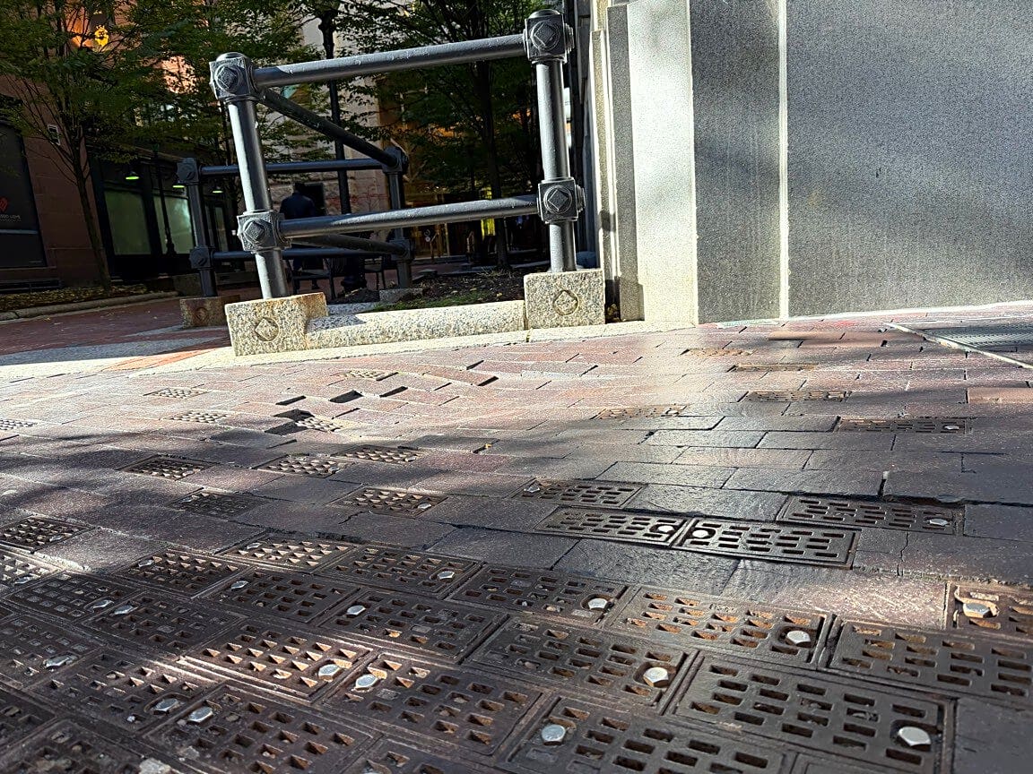 Intersection Of Broad St And Central St, Boston, MaSidewalk has a decent dip. Photo does not do it justice. My job is in the courtyard and in 10 months I have watched 5+ people fall. Please fix this before someone gets seriously hurt.