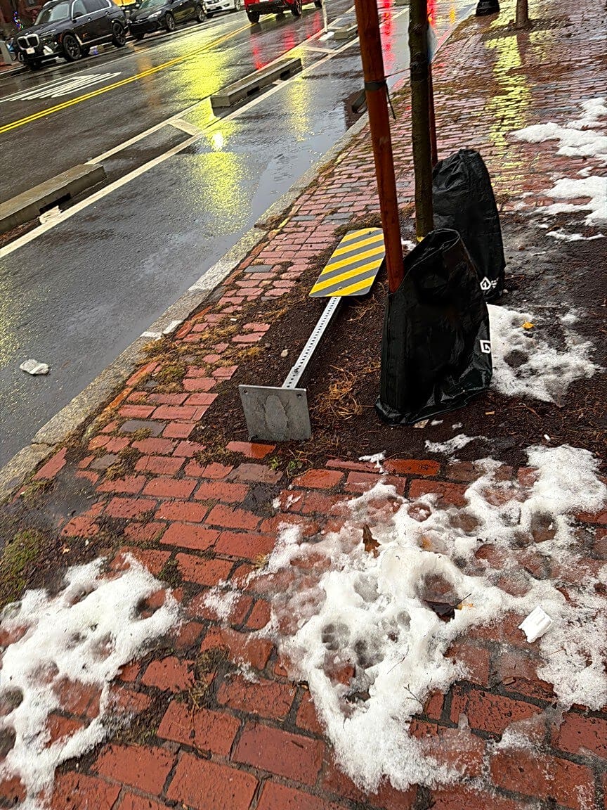 Intersection Of W Dedham St And Tremont St, Roxbury, MaBroken sign from bike path