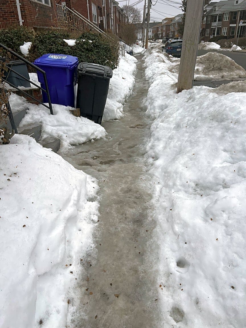 Intersection Of Monastery Rd And Colborne Rd, Brighton, MaSidewalk not cleared