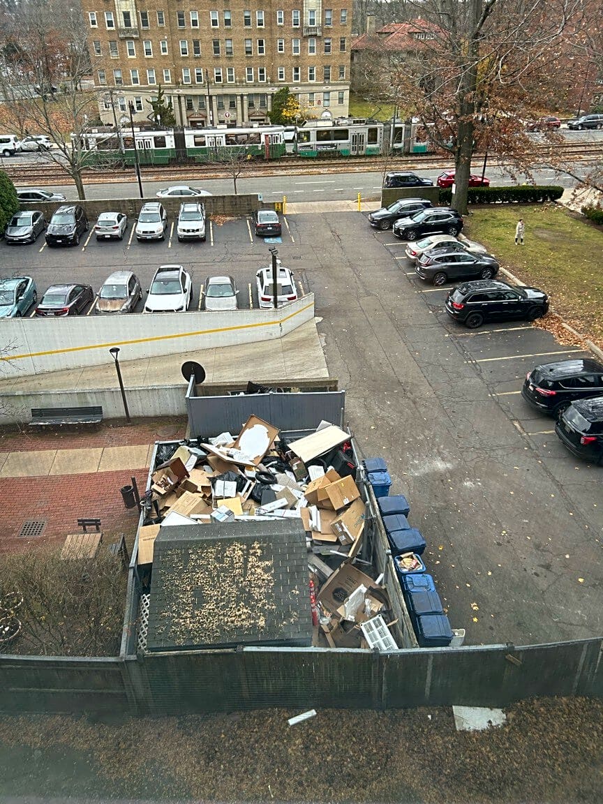 1927 Commonwealth Ave, Brighton, Ma, 02135Construction and appliance trash in back of building “Reservoir Towers Apartments” since September, never covered, never picked up legally. Sometimes someone picks it up in vans and same day the property brings new construction trash over there. I have pictures from multiple days over past 3 months. This property doesn’t care that it’s back is someone’s front and main view