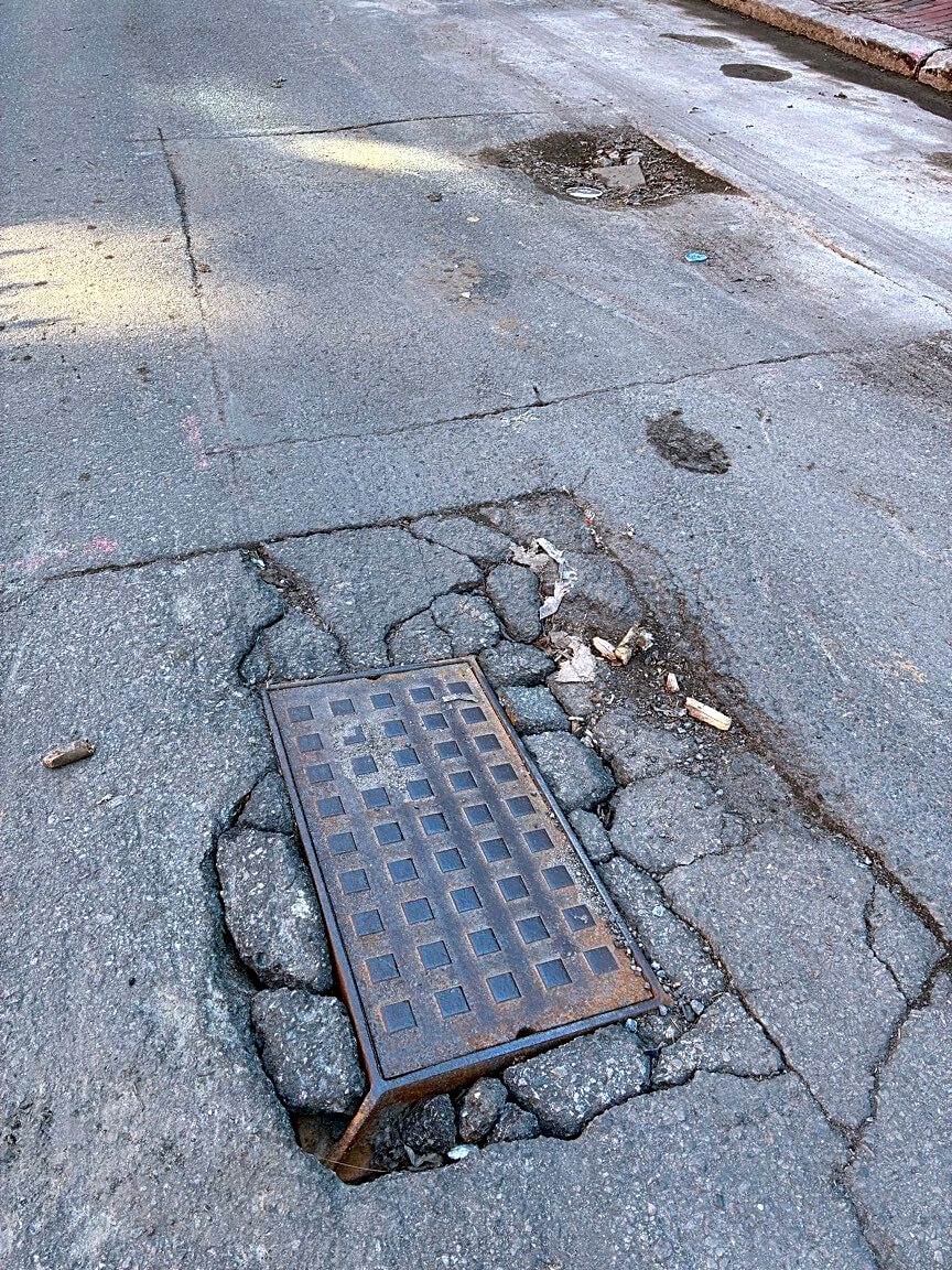 18 Concord Sq, Roxbury, Ma, 02118Huge potholes never fixed from case #101006449772. In front of 16-18 Concord Square caused by patches from gas or electric work. In one the asphalt is cracked and the metal plate is falling into the ground - a huge hazard for cars and people. Also prevented street cleaning from being able to effectively clean this part of the block.