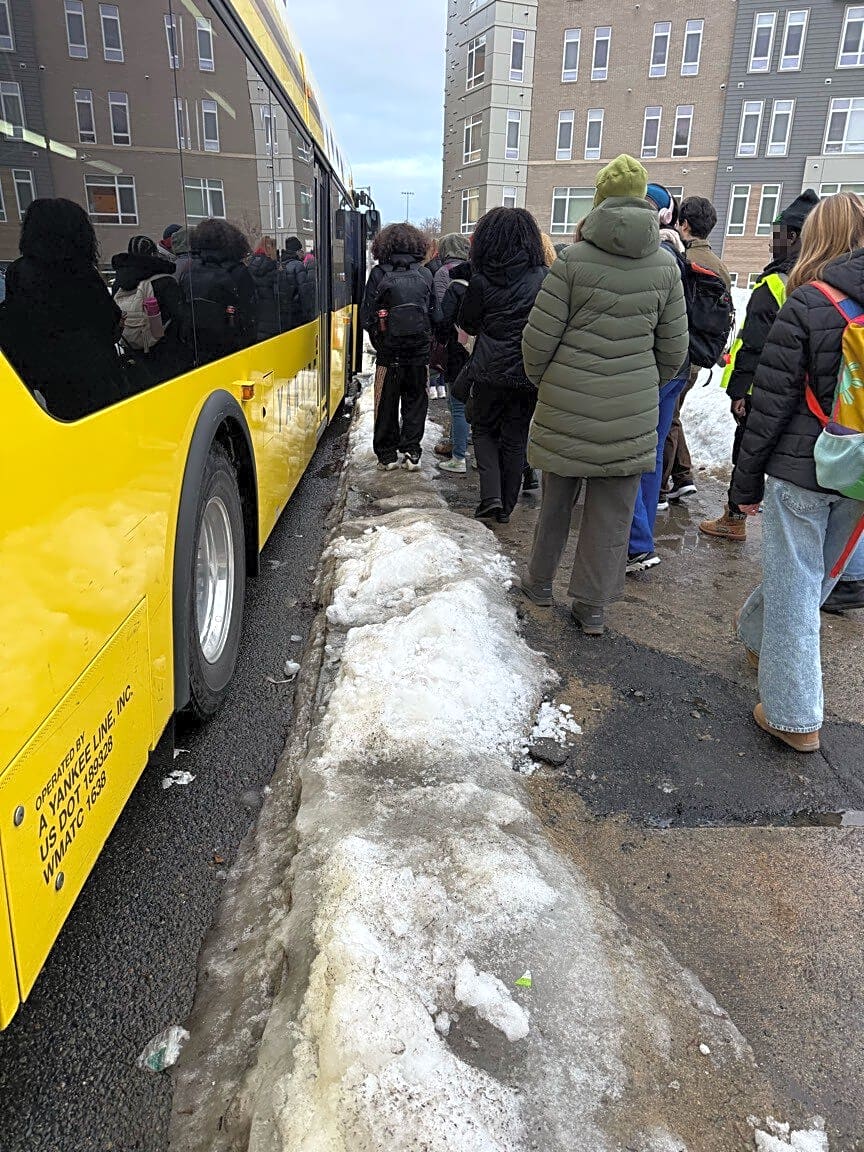 141 Green St, Jamaica Plain, Ma, 02130When the MBTA has to run shuttle buses because they are repairing the train infrastructure, can the sidewalks please be fully cleared where people board and get off the buses? Snowbanks all along pick up and drop off areas are inaccessible, unacceptable, and dangerous. First picture is outside Green St., Orange line Station, second picture is outside Jackson Square, Orange line station. Many people had to climb on top of snowbanks to get out of the rear bus door, then walk into the busy street because they couldn’t get back onto the sidewalk because of the snow. Please do not just issue a ticket for not clearing snow, this is a bigger MBTA system and city problem that needs to be addressed. City owned sidewalk.