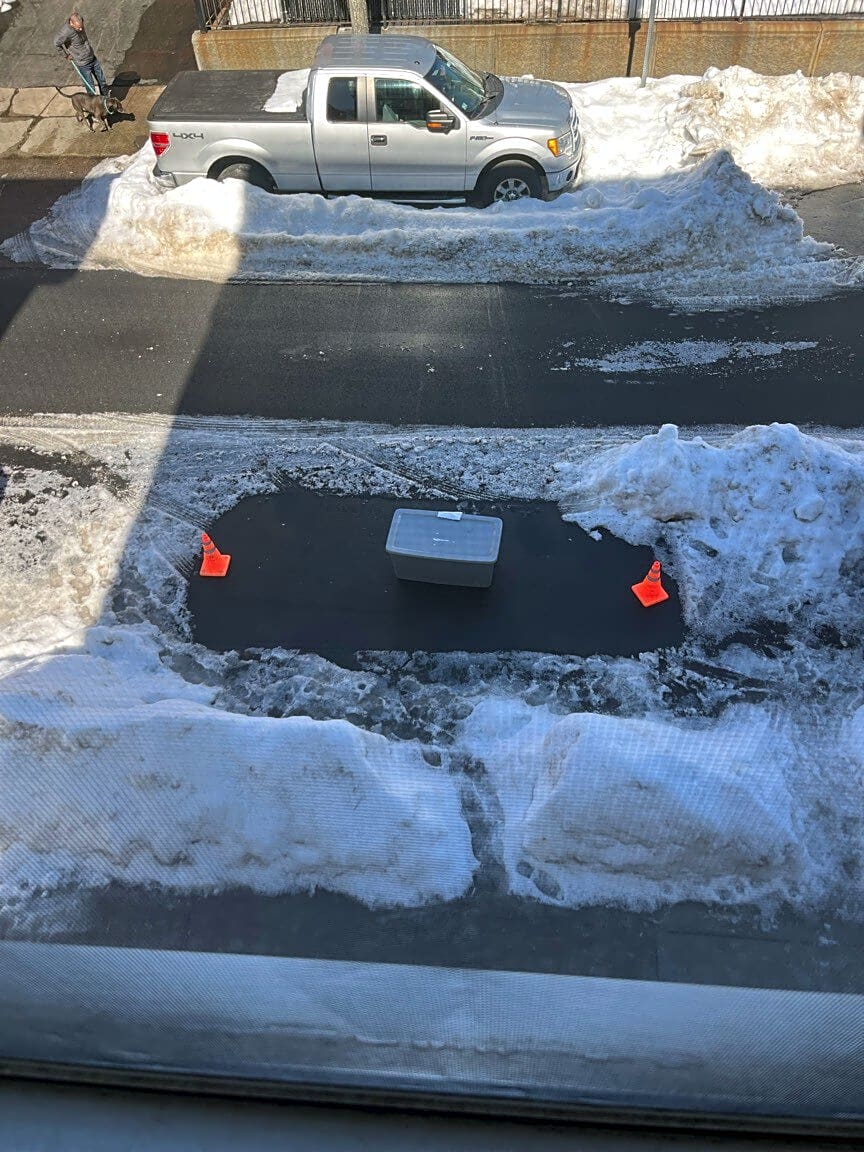 799 801 E Fifth St, South Boston, Ma, 02127Please do a space saver cleanup in citypoint. 799 east 5th as an example right now, but they're everywhere