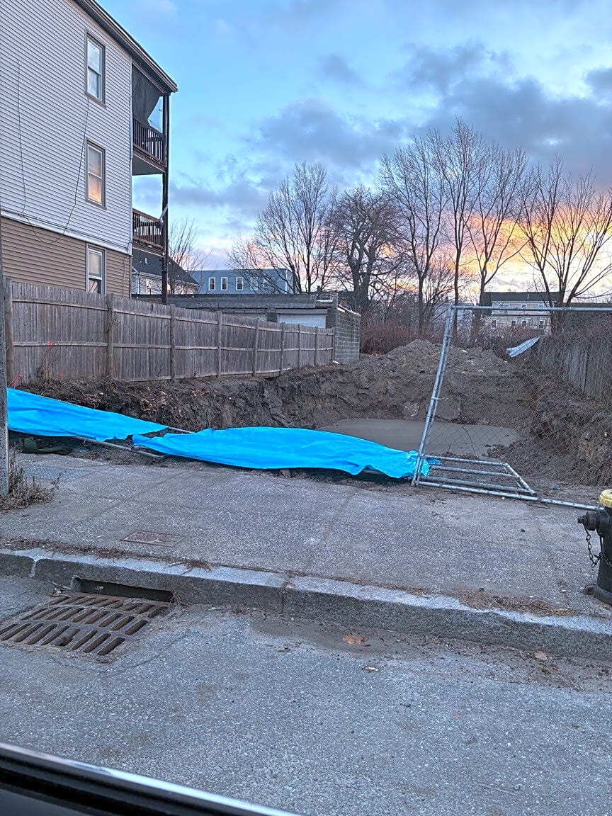 43 Woodcliff St, Dorchester, Ma, 02125Fallen fence and unsecured worksite leading to a big hole.