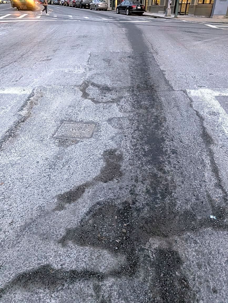 Intersection Of Cedar St And Columbus Ave, Mission Hill, MaBig Pothole at Cedar St