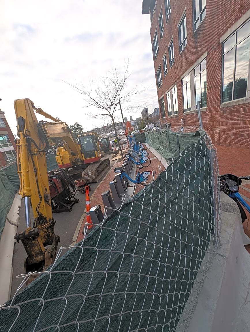 Intersection Of Warren St And Chelsea St, Charlestown, MaWhy is it necessary for the construction fencing to enclose the station? Is this even approved? Fence should be removed, and if not the blue bike station should be takien off the system until it's actually accessible.