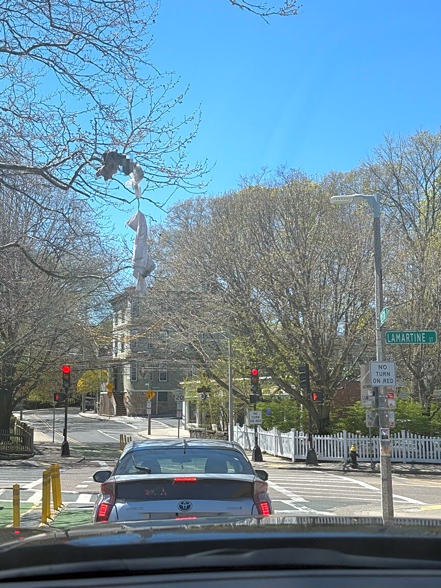 Boylston St & Lamartine StLooks like someone thought they could hang their dirty clothes from the tree out here in front of Stony Brook T, corner of Lamartine and Boylston in JP