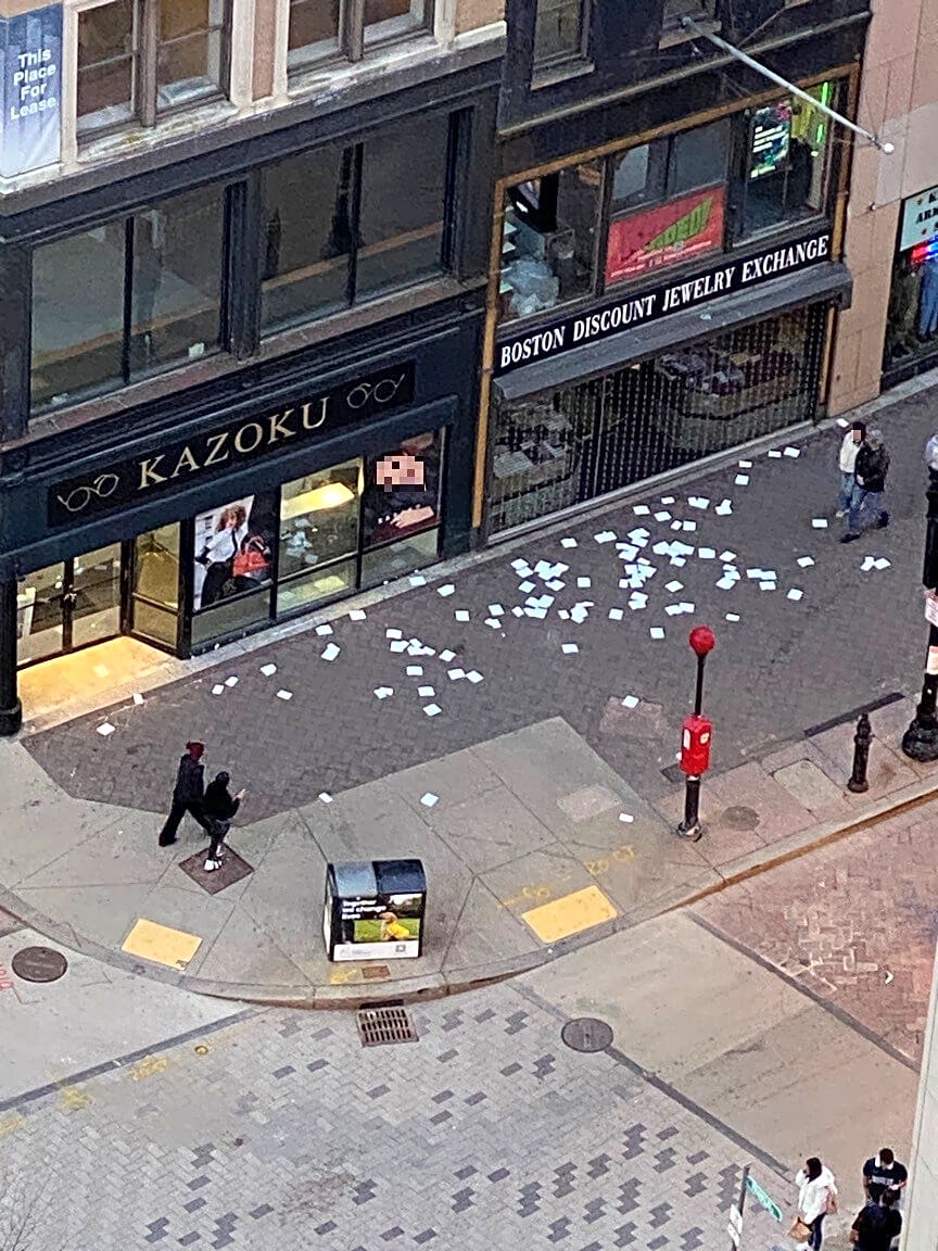1 Bromfield St, Boston, Ma, 02108Trash on the sidewalk