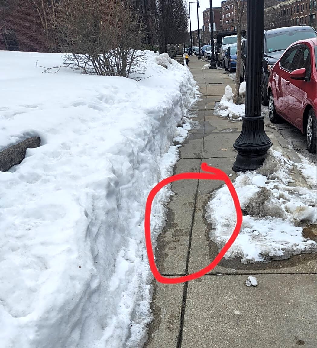 1954 Commonwealth Ave, Brighton, Ma, 021351954 did not shovel a wide enough path here for those who are not able-bodied