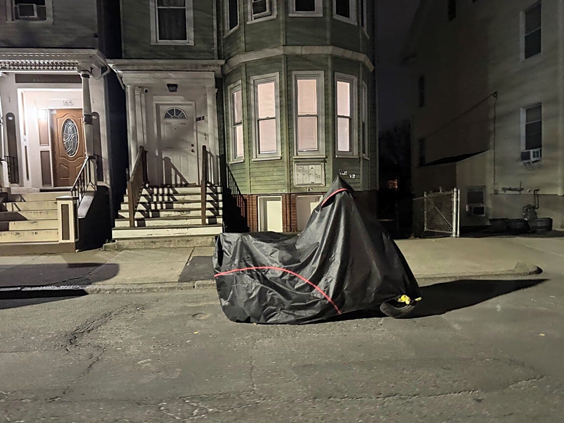 163 Lexington St, East Boston, Ma, 02128Owner using moped/scooter as parking space saver. It is then moved on sidewalk so owner can come at a later time and park vehicle.