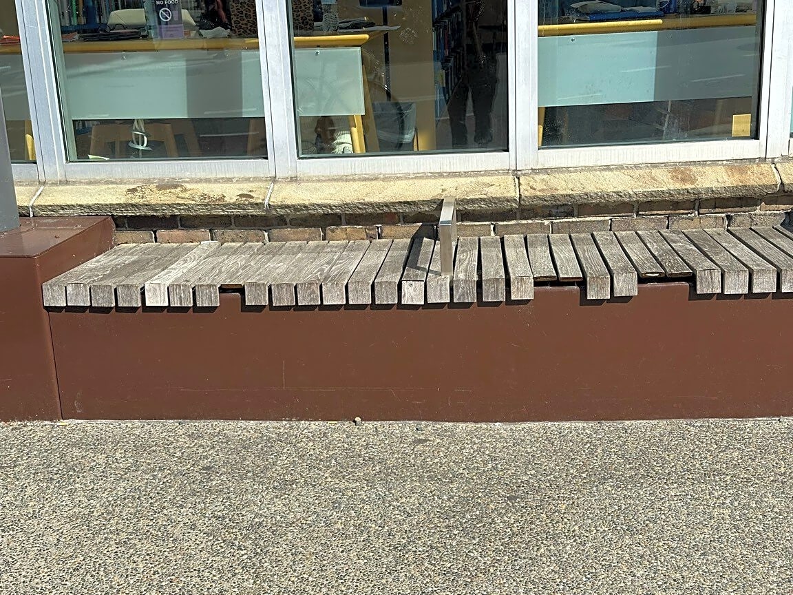 Intersection Of Corinth St And Washington St And Poplar St, Roslindale, MaDeteriorating bench at BPL Roslindale