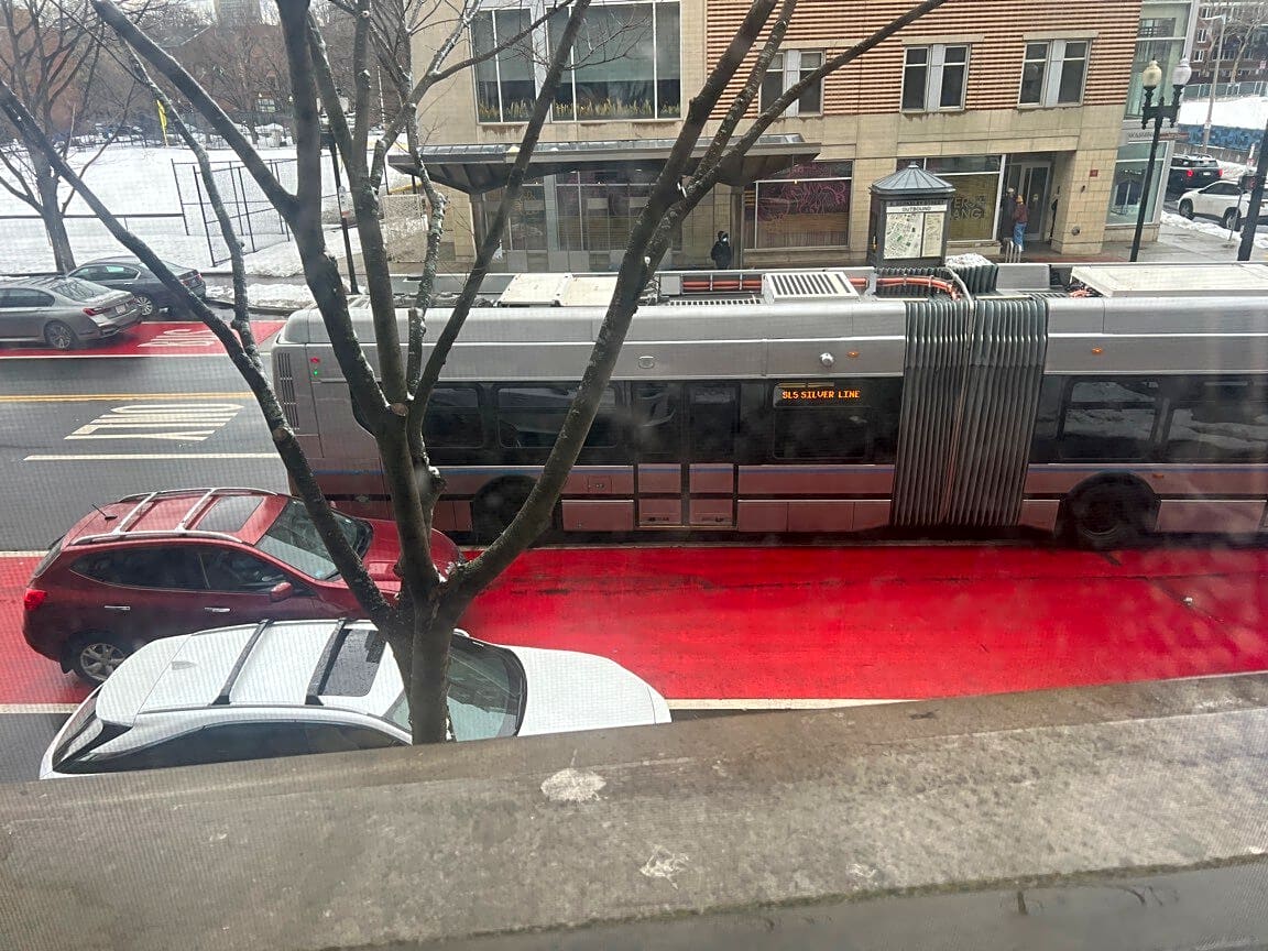 Intersection Of E Berkeley St And Washington St, Roxbury, MaThere is no worry or consequences by these idiots who block the bus lanes! Send patrols!!!!