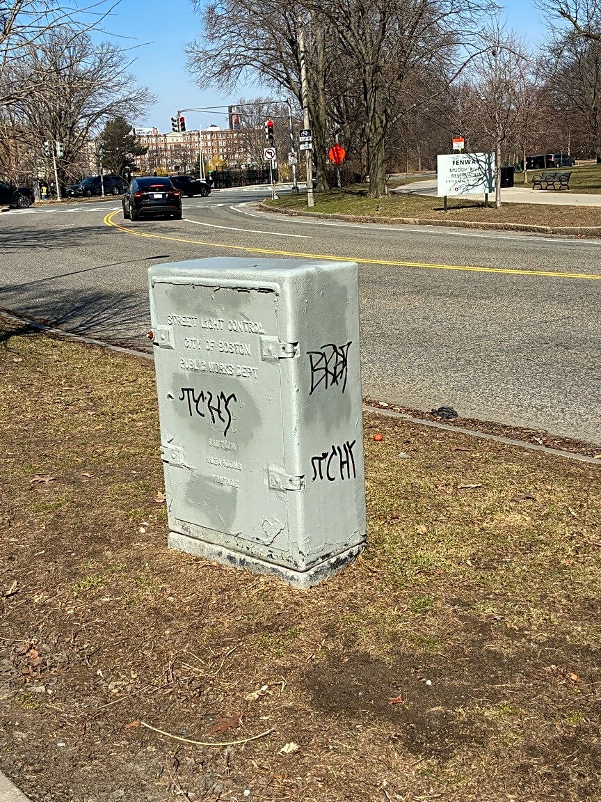 89 Hemenway St, Boston, Ma, 02115Graffitti on light co trial box. Thanks.